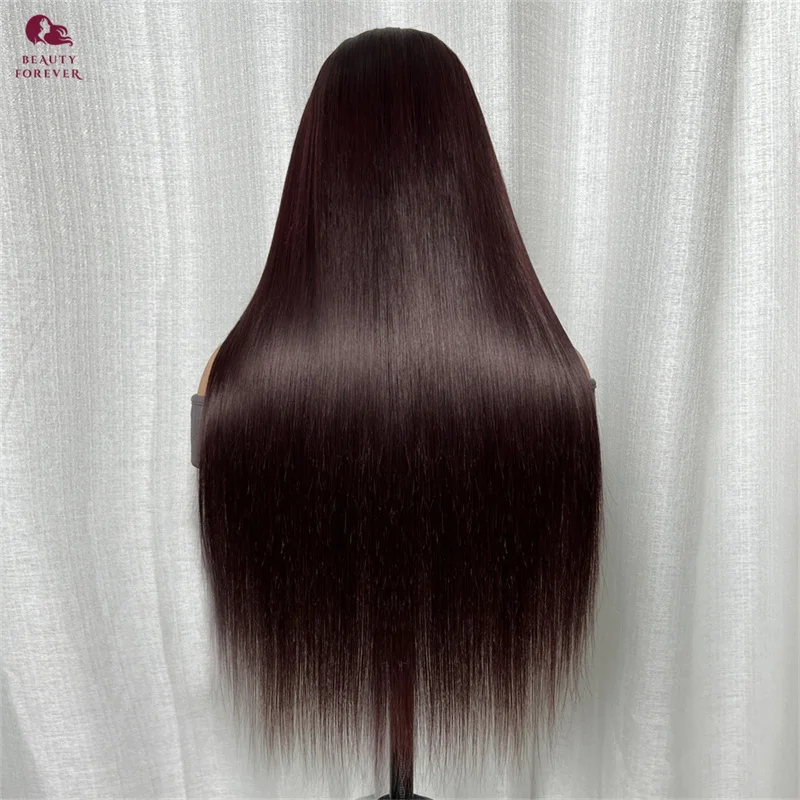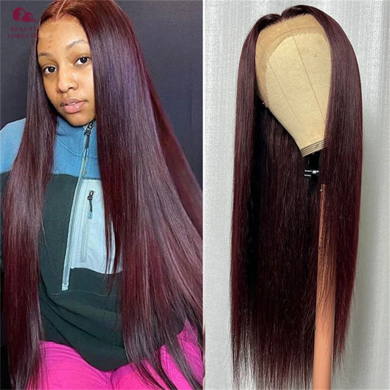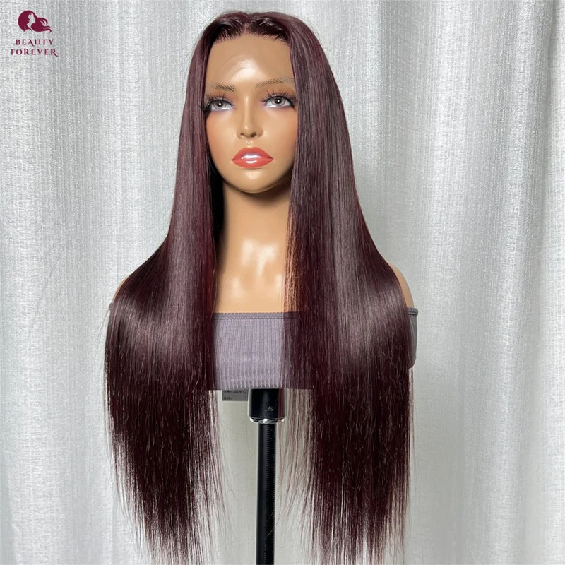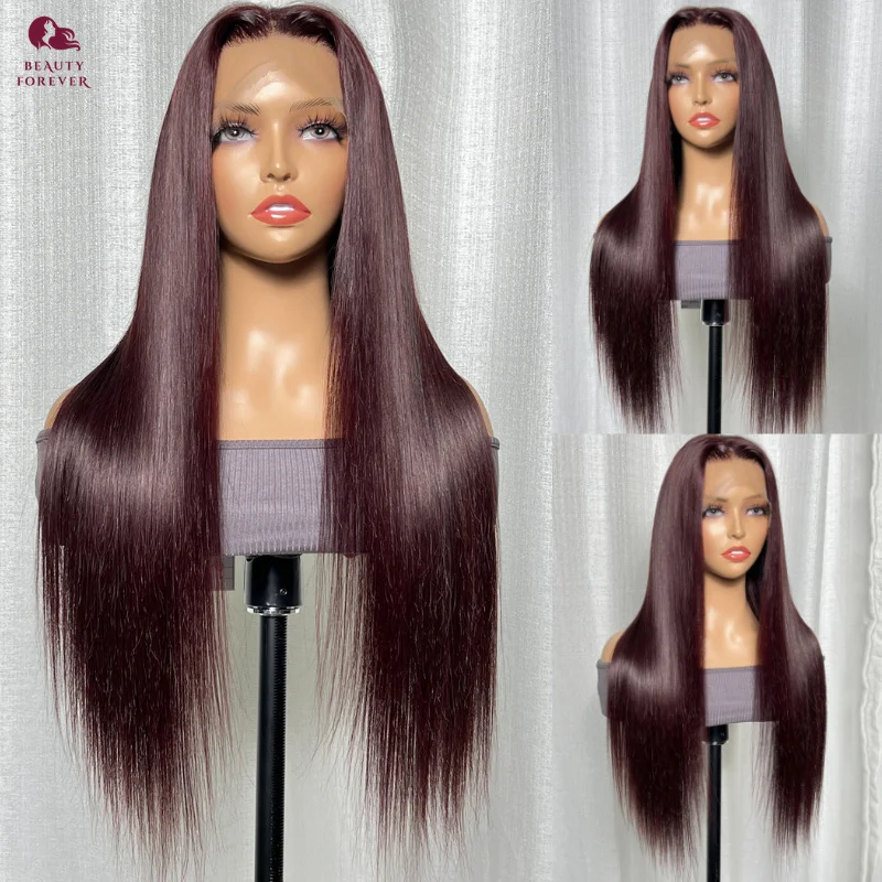 Beauty Forever-Perruque de cheveux humains violet foncé, perruque droite soyeuse, perruque pré-plumée, dentelle HD, 13×4, reflets violets