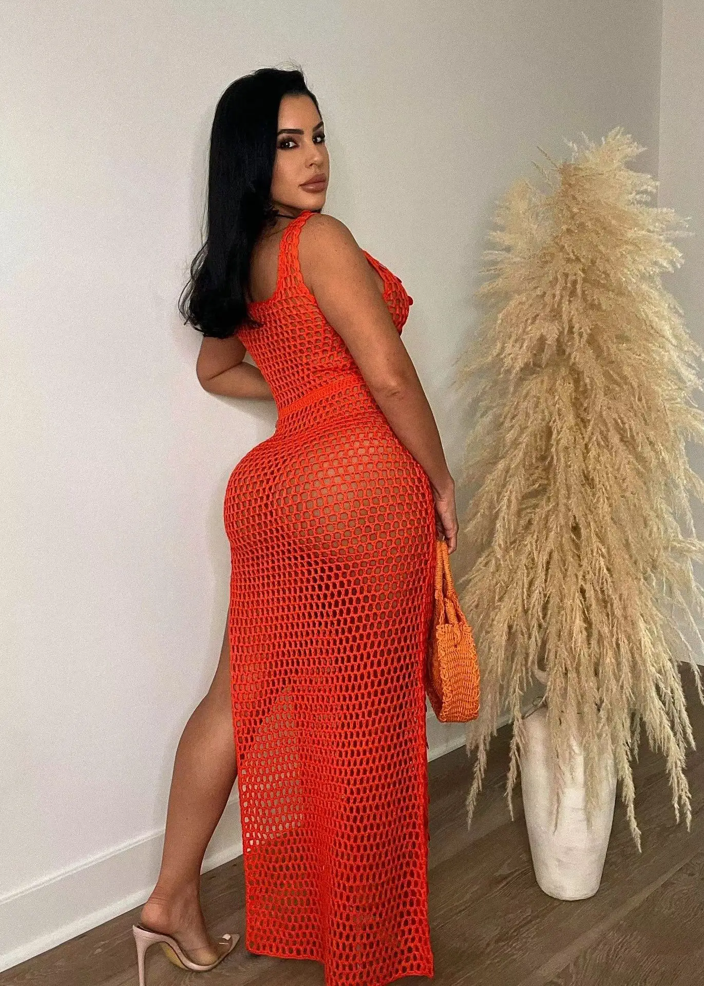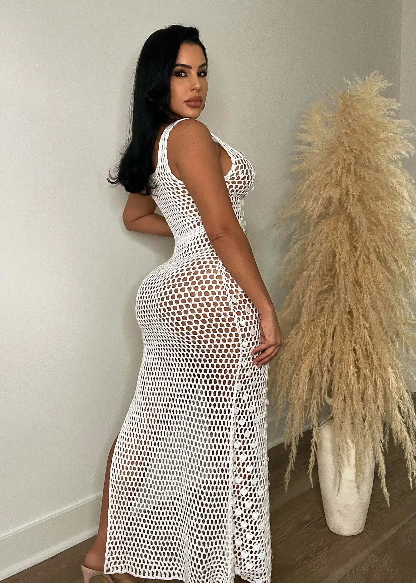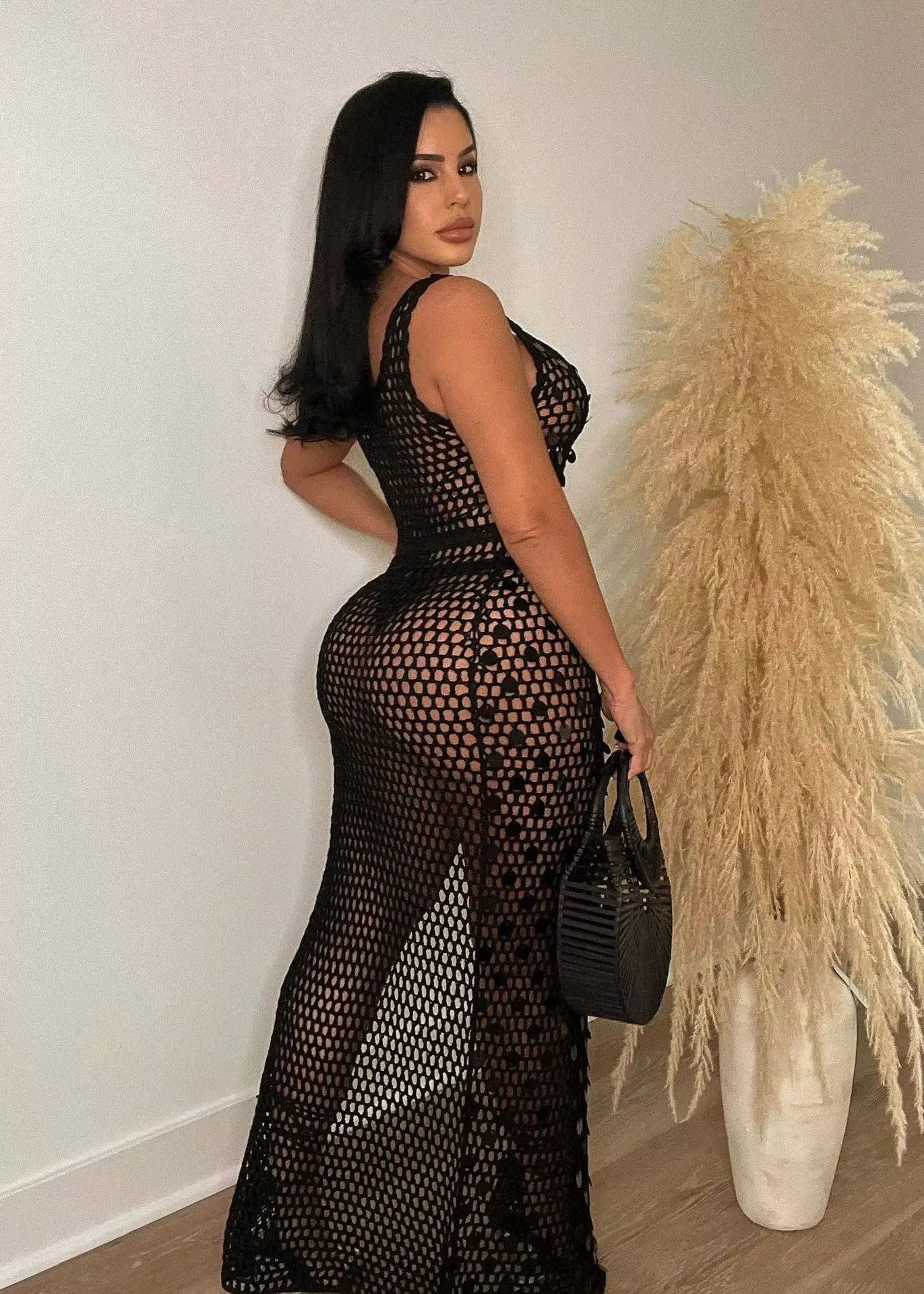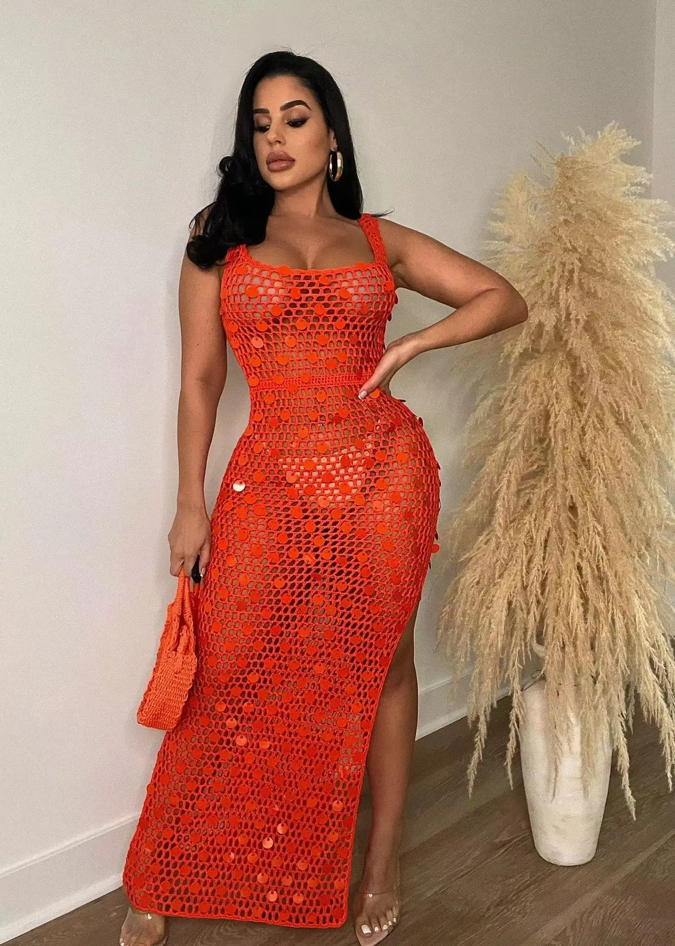 Kendny Robe longue en tricot côtelé à paillettes pour femmes évider voir à travers le maillot de bain couverture de vêtements de plage en club robes maxi sexy robe Y2K 2023