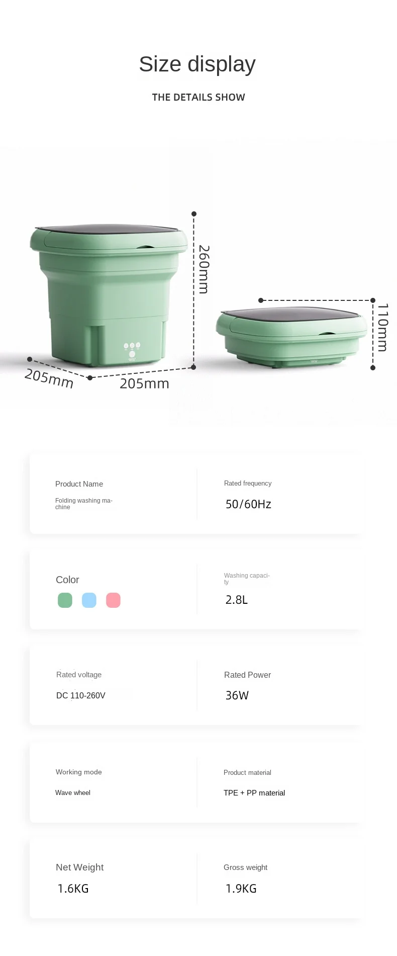 Machine à laver pliante portable, machine à laver tactile, vêtements pour bébés, utilisation pour les touristes