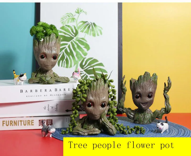 Figurine d’arbre de bébé moderne Groot Pot de fleur Jardinière Pot de pépinière Maison Bureau Décoration Organisateur Ornement en plastique Cadeaux d’anniversaire