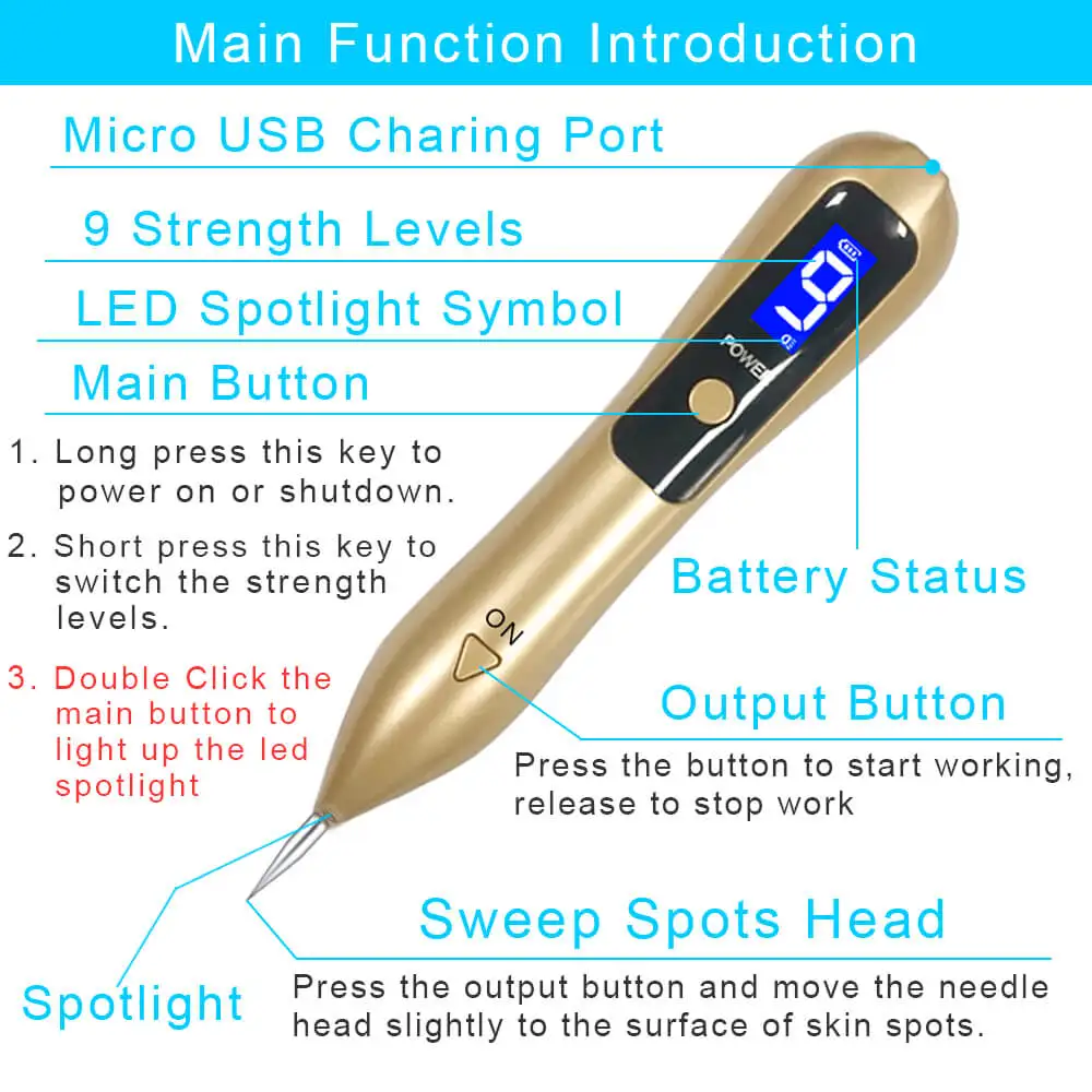 Stylo Laser pour l’élimination des grains de beauté, outil pour éliminer les verrues, les taches de rousseur, les tâches de rousseur, les névus, les taches de balayage, le tatouage, Set électrique