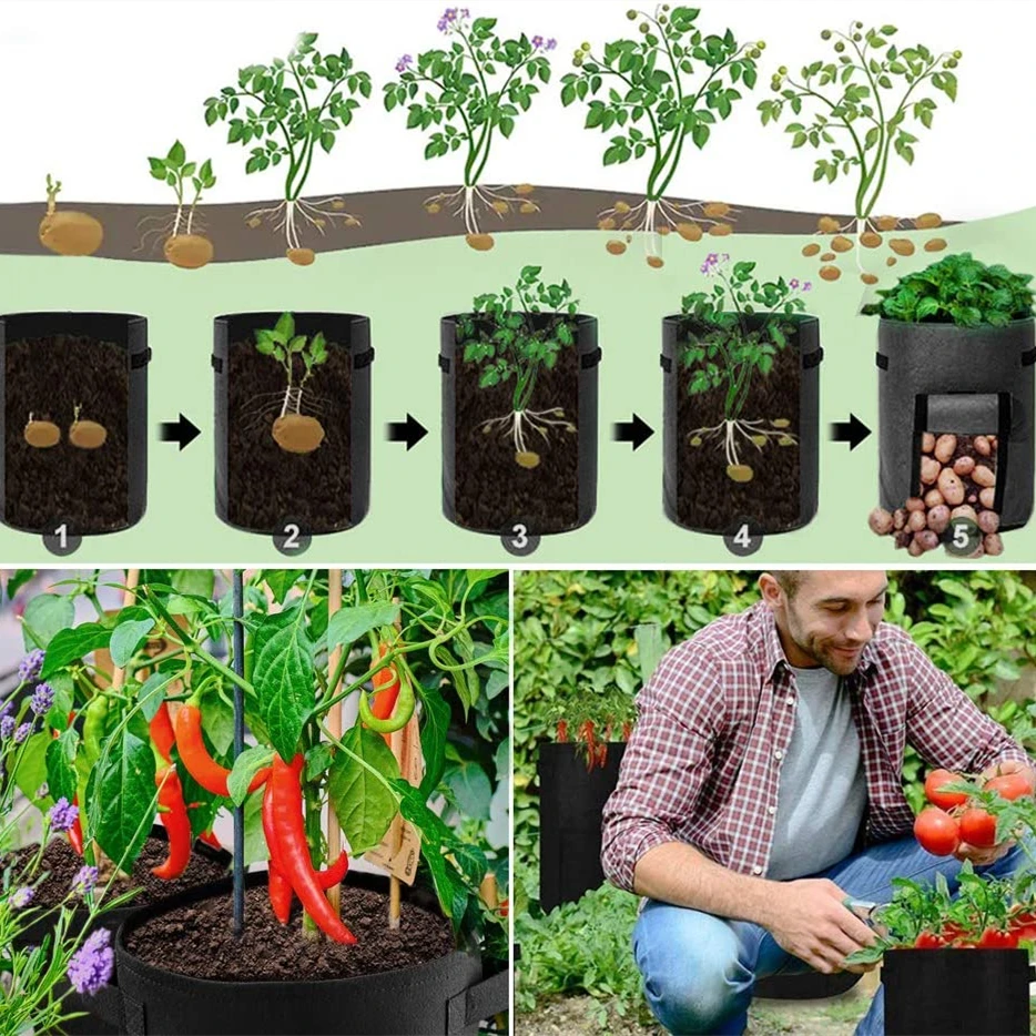 - 1. 【Sacs de culture pour plantes légumes】Vous pouvez utiliser ces sacs de culture pour planter des tomates, des pommes de terre, des radis, des carottes, des oignons, des concombres et de nombreux autres légumes. Grande capacité, donc vous pouvez l’utiliser pour planter des fleurs aussi.